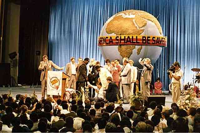 The very first CfaN Fire Conference happened in 1986 in Harare, Zimbabwe. More than 4,000 delegates from 41 different African countries took part in the week-long event. On the stage was a giant globe with a neon sign of the CfaN slogan: “Africa shall be saved!”