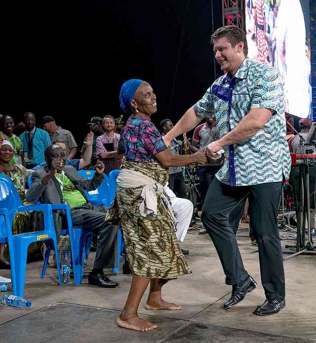 On Friday night as we were heading to the Gospel Campaign field, dark ominous clouds filled the sky as far as the eye could see. The weather forecast called for rain – and rain it did. As we were sitting on the field in the technical container, the rain started to pour. I could hear it growing louder and louder as it pounded on the roof of the container. It was a hard, cold, driving rain and I thought surely the people would run for cover. But I was told that they were still there. So, after about 15 minutes, realizing that it was not going to relent, I went out to preach in the rain (as I have done many, many times before). But when I reached the platform, to my surprise, the field was full, the people were dancing and singing in the rain! The moment I stepped up to preach, the heavy downpour turned to a very light drizzle and continued that way for the rest of the night. I was able to preach the Gospel and pray for the sick without any difficulty.