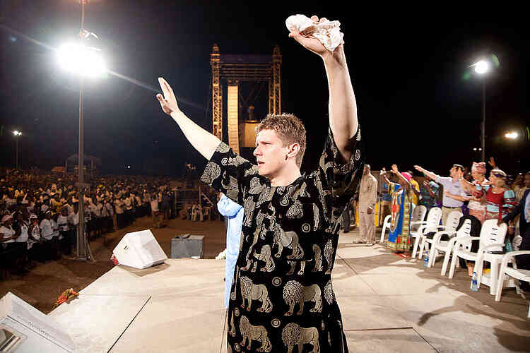 Po modlitbách za nemocné lidé vydávali svědectví. Tehdy jsem si všiml muže, který zjevně nevypadal jako Nigerijec, a který stál v řadě na svědectví. Řekl mi, že je z Indie, a že byl do dnešního dne hinduistou. V Agbani byl na služební cestě a NEPŘIŠEL vůbec na evangelizaci. Ve skutečnosti seděl v domě, který byl poměrně daleko od našeho shromáždění, když mě slyšel díky naší výkonné aparatuře (P.A. system) kázat evangelium. Poklekl tam, kde právě byl, a v modlitbě přijal Ježíše. V tu chvíli byl nejen spasen, ale zároveň i uzdraven z těžké nemoci, která ho několik posledních měsíců sužovala. Dnes večer přišel, aby svědčil o tom, že Ježíš Kristus je Spasitel a uzdravitel!