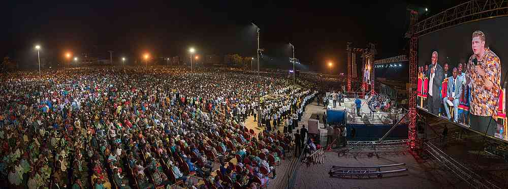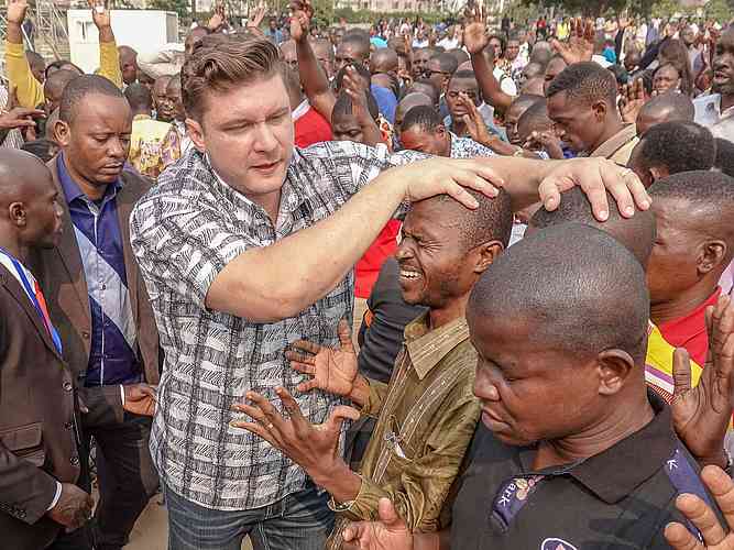 Dnešní den je vylitím Ducha Svatého v Brazzaville v Kongu, a to jak ráno, tak i večer. Dnes ráno jsme s Peterem Vandenbergem uzavřeli Konferenci ohně službou pastorům a církevním služebníkům. Poté jsme se za ně modlili za naplnění Duchem Svatým. Pokládali jsme ruce na stovky senior pastorů, kteří zase pokládali ruce na přítomné tisíce služebníků. Dnešního večera, kdy se shromáždil obrovký dav lidí, jsme se opět modlili za lidi, z nichž se mnozí právě obrátili, aby mohli přijmout tento úžasný dar. Místo se otřáslo. Dokonce ještě předtím, než jsme se začali modlit, se již Duch Svatý pohyboval po obrovském poli sklizně. Z pódia jsem viděl, jak mnoho ohromených lidí padá spontálně na zem. Zažili jsme spoustu zázraků.