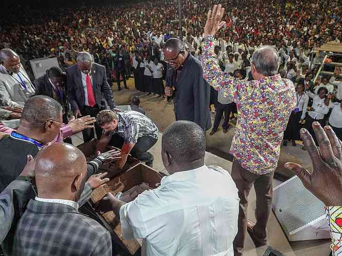 Byl to opravdu slavný týden mnoha spasení a uzdravení. Na závěr našeho posledního shromážnění jsme požádali místní pastory, aby k nám přišli na pódium. Peter Vandenberg nás vedl v modlitbě za mnohé modlitební požadavky, které naplnily dvě velké krabice. Nakonec Daniel žehnal republice Kongo. Nepřítel nás tady nechtěl mít, ale Boží plán pro drahocený lid tohoto národa nebyl zmařen.