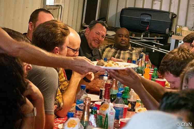 Odpoledne jsme se sešli s naším úžasným týmem k vánočnímu stolu. Je to naše každoroční tradice, oslavit na poslední kampani roku Vánoce a s radostí, smíchem a vděčností oslavit Boha za jeho dobrotu, kterou nám v uplynulém roce prokazoval. Několik našich pracovníků bylo v posledních měsících ohroženo na životě, když projížděli s technikou válečnými zónami. V kamiónech máme díry od kulek, které jsou svědectvím o Pánově věrnosti a ochraně našeho týmu. Ze všeho nejvíce Pánu děkujeme za další rok historické sklizně! (DK)