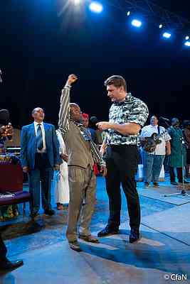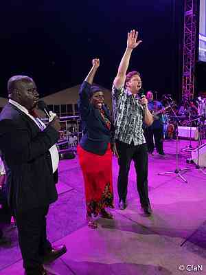 Před 17 lety navštívila tato žena kampaň CfaN v Owerri. Během ní si položila ruku na lůno a modlila se za uzdravení z neplodnosti. Na letošní kampani přišla na pódium se svou dcerou, aby svědčila o svém uzdravení.