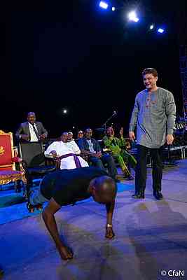 Po shlédnutí jeho pozdravu budete jistě požehnaní i pohledem na vrcholné okamžiky z pátečního večerního shromáždění. Přesvědčíte se o tom, že vaše modlitby a finanční dary právě teď v Nigérii napomáhají skvělému dílu. Prosíme, modlete se nadále za Daniela a za celý tým CfaN. Dnes večer proběhne závěrečné shromáždění a my Bohu věříme za mnohem více spasených, aby Port Harcourt nezůstal stejný.