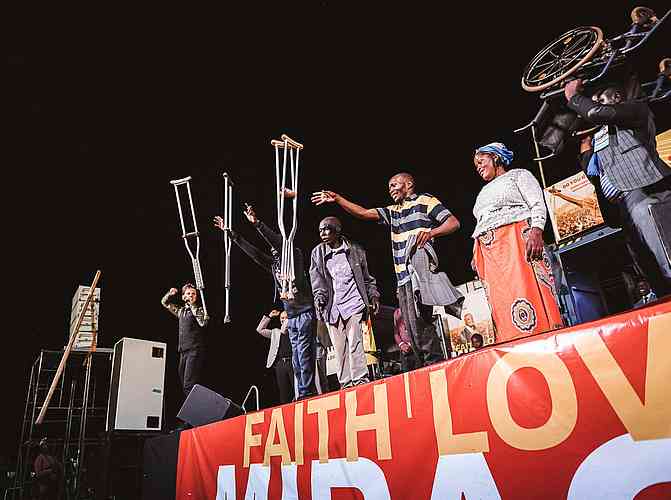 V takových chvílích si uvědomujeme, že kázané evangelium skutečně uvolňuje Boží moc (Římanům 1,16). Když jsme pozvali lidi ke svědectví, utvořila se dlouhá fronta. Ve čtvrtek večer začalo chodit obrovské množství chromých. Bylo jich tolik, že jsme museli dělat rozhovory vždy se čtyřmi naráz. Odhazovali z pódia berle, protože už je nebudou potřebovat!