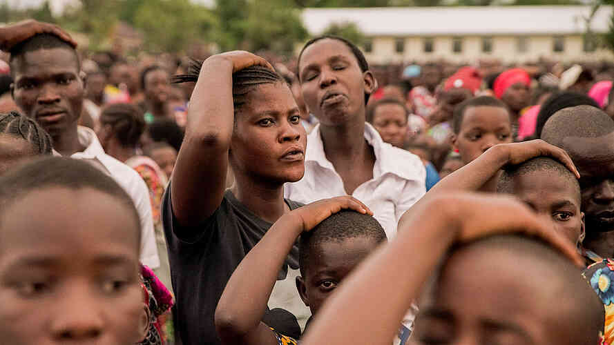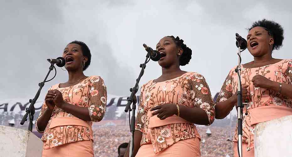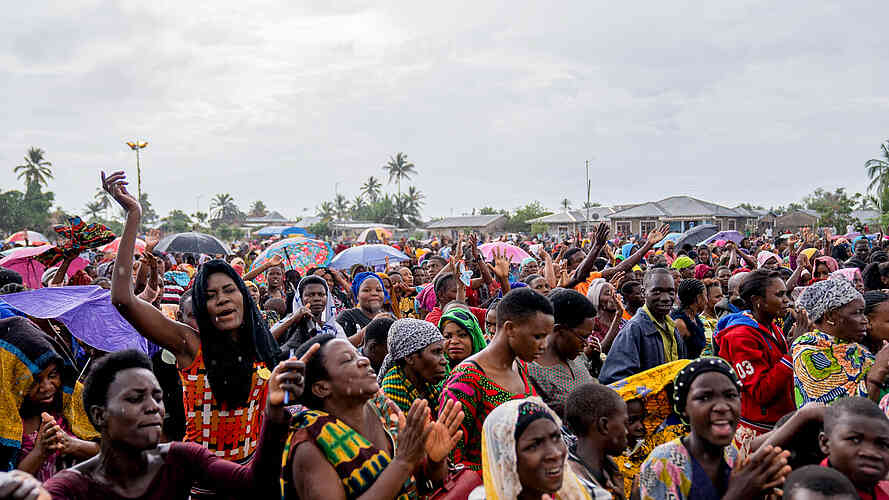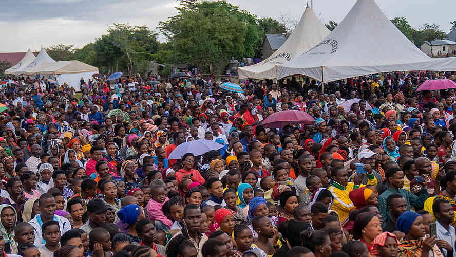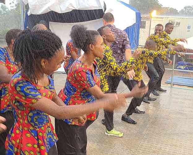 Hned po skončení času svědectví začalo pršet. Bůh zadržel déšť přes celou dobu shromáždění až do jeho úplného konce. Zástup si potom vytáhl deštníky a lidé odcházeli domů šťastní ze všeho, co Bůh v Kahamě, Tanzánií dělá.“