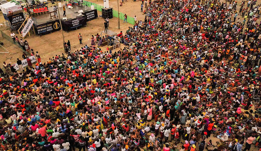Evangelista Jared Horton píše: „Právě jsem se vrátil zpět na hotel a to jediné, co dokážu říci je… WOW! Věděl jsem, že na kampaň přijde hodně lidí, ale vstoupit na podium a spatřit před sebou ten obrovský zástup lidí, hladových po Božím slově, je opravdu veliká síla a dokáže vám to do očí vehnat slzy. Jen pohled na krásný lid Tanzánie a na jejich zjevné očekávání po Božích věcech je jednoduše úžasný.