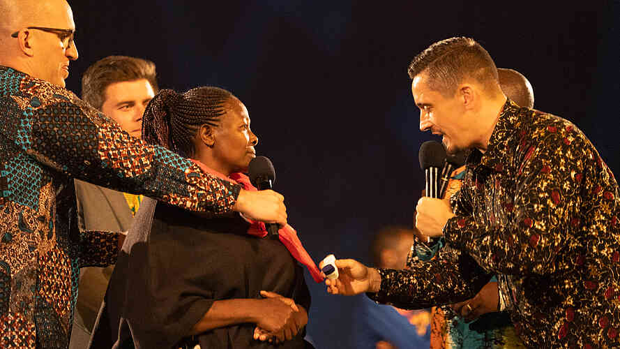 Dnes jsme se za lidi také modlili, aby přijali křest v Duchu svatém. Když společně prosili Ježíše, aby je pokřtil v Duchu svatém, celou plochu kampaně náhle prostoupila Boží moc a tisíce lidí se začaly modlit v jazycích a prorokovat. Byla to opravdu nádherná podívaná!