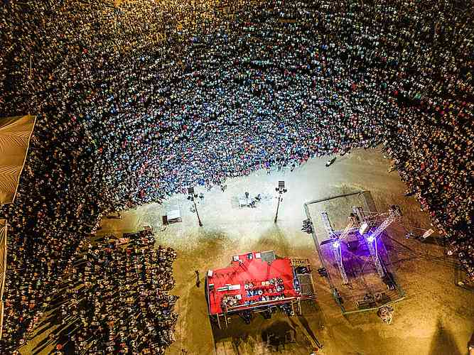 Je to zázrak nejen proto, že to byl neskutečný logistický a technický počin - ale také proto, že jej uskutečnil tým, který byl vyškolen a mobilizován výhradně prostřednictvím Evangelizačního Bootcampu naší organizace Kristus pro všechny národy. V každém z pěti měst byli rozmístěni dva evangelisté, kteří absolvovali tento náš výcvikový tábor. Kázali a sloužili čtyři z pěti večerů ve svém městě. Já jsem cestoval z kampaně na kampaň a na každém místě jsem kázal jeden večer. Podívejte se na tento obrázek, který ukazuje jeden záběr z dronu z každé večerní kampaně v každém městě. Snad vám pomůže získat představu o rozsahu toho, co jsme právě zažili!