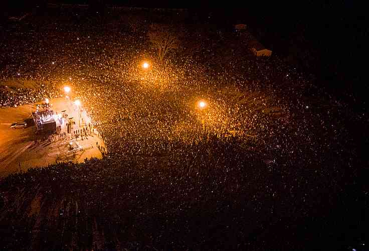 Podívejte se na tento obrázek, který ukazuje jeden záběr z dronu z každé večerní kampaně v každém městě. Snad vám pomůže získat představu o rozsahu toho, co jsme právě zažili!