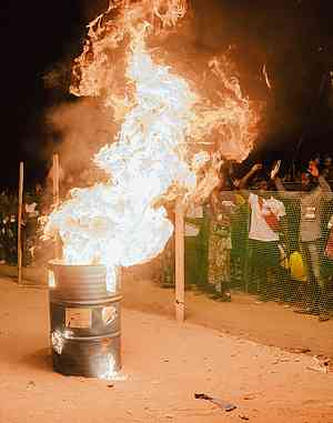 Také v Kasamě zástup spolu s členem královské rodiny (místního kmene) a místními biskupy činil pokání kvůli veliké modle krokodýla uprostřed města. Podobiznu krokodýla jsme spálili v našich obřích hořících sudech spolu s jinými čarodějnickými předměty.