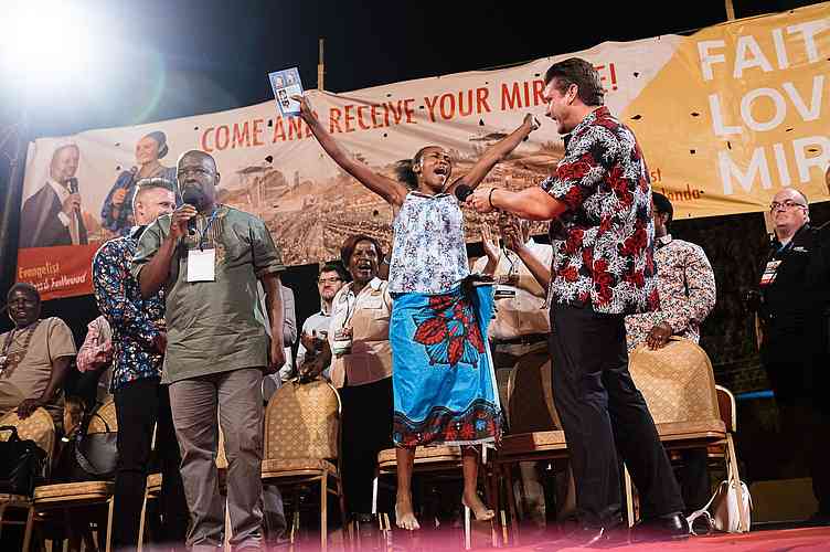 Poté jsem se modlil za nemocné a po celé ploše se okamžitě začaly dít zázraky. Jeden muž vyběhl z davu a držel nad hlavou berle. Dva roky byl ochrnutý, ale dnes večer dokázal běhat a skákat. Byl zcela uzdraven!