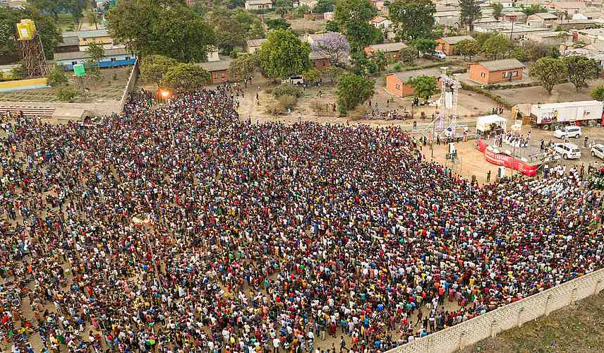 Tento týden se v Zambii píšou dějiny. Evangelium otřásá pěti městy po celé zemi - současně! V každém městě se zástupy lidí, přicházejících na shromáždění, zvětšily do té míry, že zaplnily maximální kapacitu evangelizačních ploch, na kterých se kampaně konají, a způsobily nám nečekané organizační výzvy. V každém městě Bůh mocně jedná a zjevuje svou slávu. Zprávy o divech a zázracích, které Bůh koná, se roznesly a všichni o nich mluví.