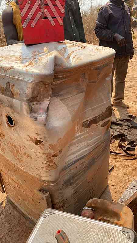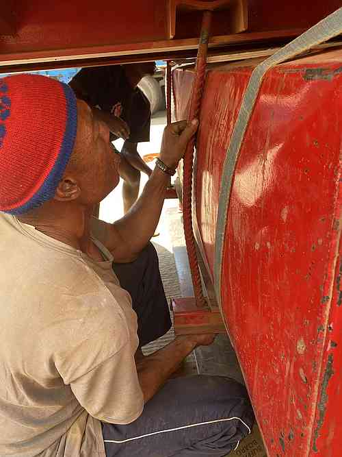 Jakmile obdržíme náhradní díly pro náš nákladní vůz Shacman (páté kolo) z Lubumbashi, budeme pokračovat s našimi nákladními vozy do Kaminy.