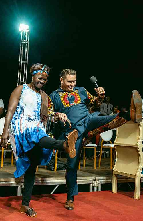 Jiná paní měla před deseti lety nehodu na motorce "Boda Boda" a měla těžce poškozenou nohu. Po celé délce stehna má velkou jizvu. Nemohla se postavit ani chodit po svých. Nebyla schopna vstát ani v průběhu modliteb za uzdravení, ale po modlitbě se sama postavila a začala tančit. Pak přišla na pódium, aby vzdala slávu Ježíši a zatančila si spolu se mnou!