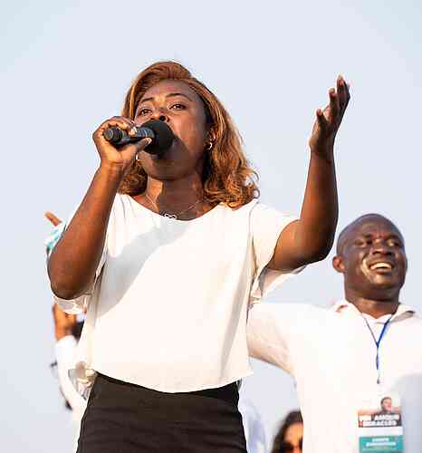 Pak přišla k okraji pódia, aby vydala svědectví. Mama Africa měla silné bolesti břicha, které jí znemožňovaly chodit vzpřímeně. Během modlitby byla zcela uzdravena. Na pódiu se Mama Africa dokázala ohýbat, chodit vzpřímeně a dokonce tančit, čímž dokázala, že je nyní zcela bez bolesti.