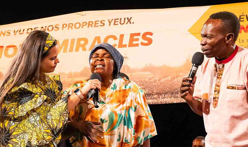 Bolest okamžitě ustoupila a v neuvěřitelném okamžiku radosti a svobody Exaucé poprvé po letech bez bolesti přeběhl přes pódium! Když dav propukl v chválu, Exaucé se rozplakal. Evangelista Dario ho musel zachytit, když se zhroutil a třásl se pod náporem emocí z právě prožitého zázraku.
