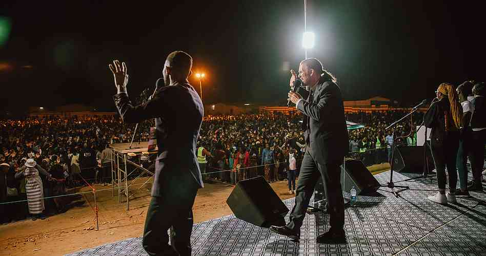 Evangelista Michael Job dal všem příležitost zbavit se čarodějnických fetišů, juju, amuletů a démonických předmětů a vhodit je do sudů, které jsme potom zapálili! V tu chvíli se diametrálně proměnila atmosféra. Michael vítězně křičel z pódia a zástup odpovídal „AMEN!!!“ pokaždé, když vyvolal některého falešného boha a zlomil jeho moc. V kombinaci s plameny šlehajícími do vzduchu to bylo divoký – a velmi názorný obraz pevností, které byly navždy zlomeny.