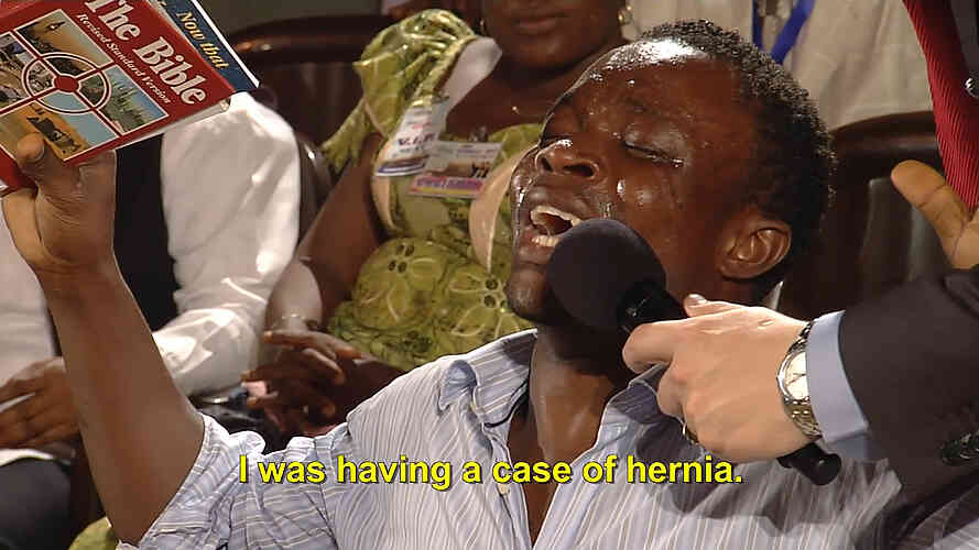 „Řekl jsem si: ‚Dnes je můj den. Musím přijmout své uzdravení. Jestliže Kristus uzdravuje i v této generaci, musím odsud dnes odejít zdravý.‘ Když se pak kazatel začal modlit, řekl: ‚Lidi, nedívejte se na mě, na Daniela Kolendu. Upřete zrak na Boha!‘ Modlil jsem se a náhle se mi roztřásly nohy. Nohy se mi začaly pohybovat, pohybovat, pohybovat. Děkoval jsem Bohu a náhle jsem zjistil, že už nemám oteklý šourek.“