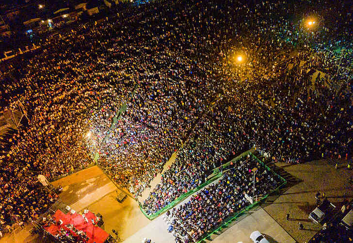 Tento týden jsme uspořádali pět kampaní v pěti městech, z nichž každá běžela po pět večerů. Toto bylo závěrečný, pátý večer prvního týdne. Příští týden se přesuneme do dalších šesti nových měst, v nichž proběhne dalších šest kampaní (během dvou týdnů tedy celkově 11). Odhadujeme, že okolo 3 miliónů lidí uslyší evangelium a že stovky tisíc z nich řeknou své ano Ježíši. Prosíme, nepřestávejte se za nás modlit. Děkujeme.