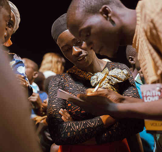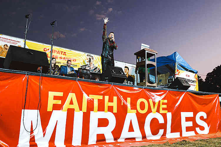 Na plochu jsem dorazil právě v okamžiku, kdy evangelista Michael Job (který má kampaň na starosti spolu s evangelistkou Deborou Cohenovou) dokončil kázání a uvaděči sbírali od lidí vyplněné karty rozhodnutí kvůli následné péči.