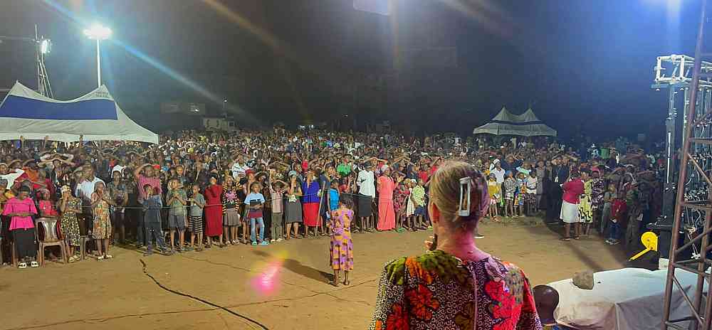 Der Abschlussabend am Sonntag war außergewöhnlich. Heftiger Regen fiel, genauso wie vor vielen Jahren, als Evangelist Reinhard Bonnke Aba besuchte. Er wurde so intensiv, dass ich mir Sorgen machte, die Menschen würden gehen. Doch die Menge bewegte sich keinen Zentimeter vom Fleck! Der Regen hörte auf und man konnte am Ende der Predigt eine Stecknadel fallen hören. Der letzte Bekehrungsaufruf drehte sich um wahre Buße, und die Menge reagierte, indem Hunderte nach vorne rannten.