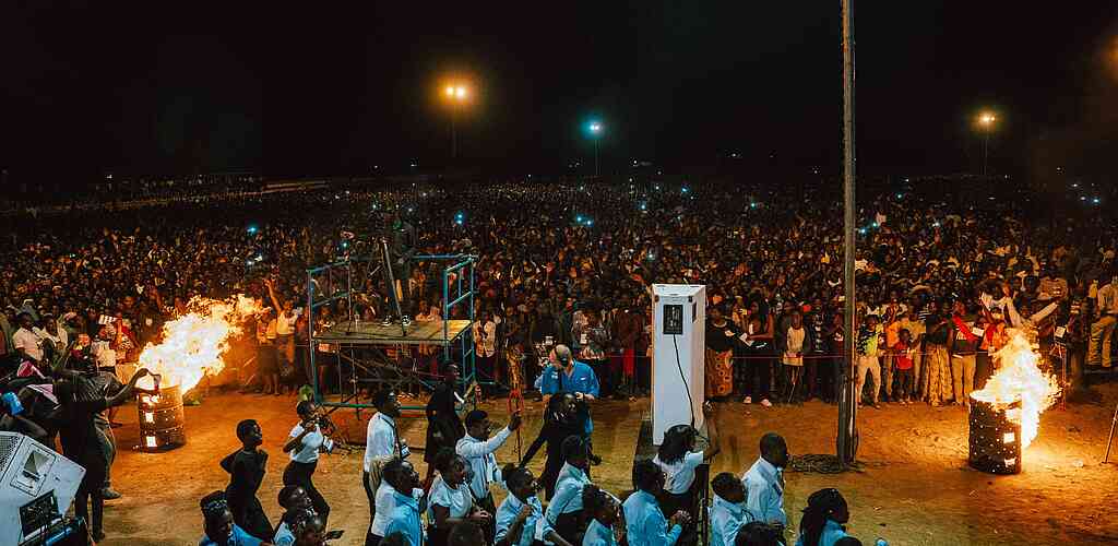 „Der vierte Abend in Kanyama war einfach herrlich! Ich predigte klar und einfach das Evangelium. Während ich sprach, begann sich der Heilige Geist auf dem Feld zu bewegen. Beim Bekehrungsaufruf hörte man die Menschen schluchzen und Zehntausende erhoben ihre Hände – ein heiliger Moment. Dieser Abend war auch besonders, weil wir danach für die Taufe im Heiligen Geist beteten. Als ich die Menge im Gebet anleitete, das Geschenk das Heiligen Geistes zu empfangen, wurde es ganz still – bis der Heilige Geist wie eine Riesenwelle das Feld überflutete. Überall wurden die Menschen mit der Kraft und dem Feuer Gottes erfüllt. Die Ernte ist wirklich reif!“