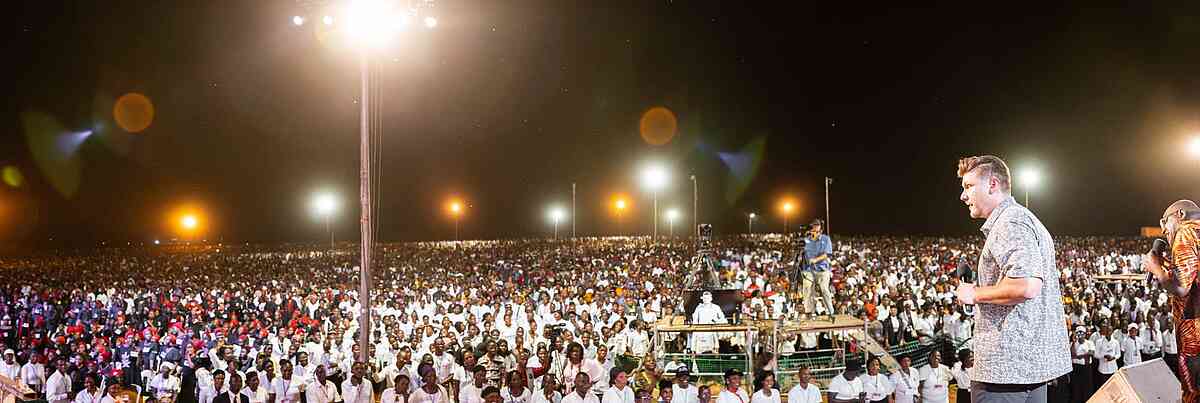 Die Menschenmenge war riesig und die gespannte Erwartung war mit Händen zu greifen. Das gesamte Feld bewegte sich wie ein lebendiger, atmender Organismus voller Menschen, deren Glaube und Hunger nach Gott stark spürbar waren. Mit großer Überzeugung versicherte ich ihnen: „Die Wunder, die Gott diese Woche hier tun wird, werden ganze Generationen beeinflussen, sodass eure Kinder und Enkel noch davon reden werden.“