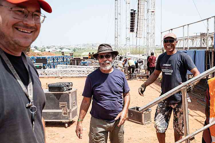 Wir sind fleißig dabei, unsere Ausrüstung abzuladen und aufzubauen und sicherzustellen, dass alles am richtigen Platz ist.