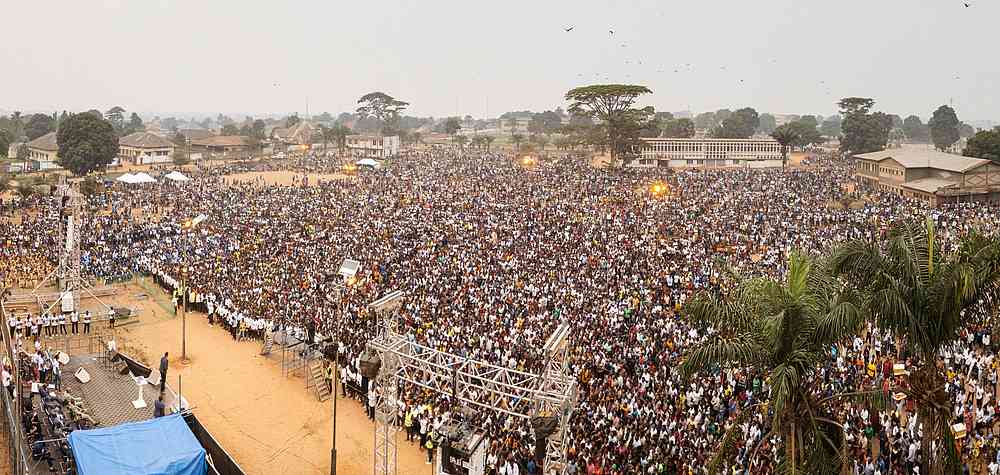 In Mwene-Ditu versammelte sich eine weitere riesige Menschenmenge zur allerersten Evangelisation mit ausländischer Beteiligung.