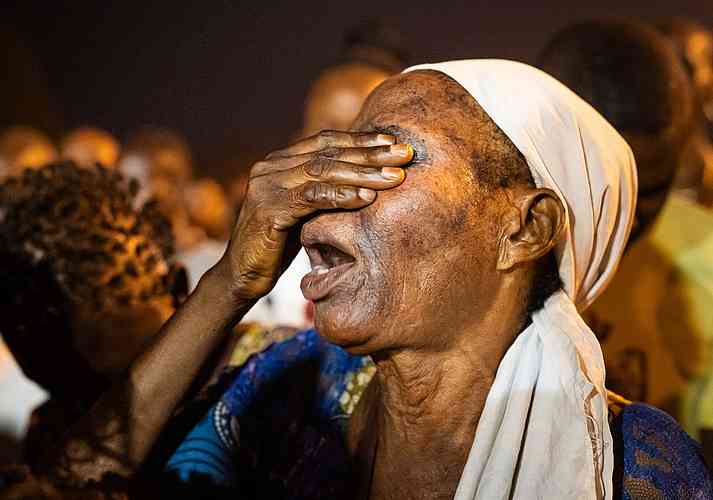 Heute Abend öffnete Gott ihre Augen. Der Evangelist überprüfte ihr Sehvermögen auf der Bühne – unter lauten Freudenrufen der Menschenmassen.