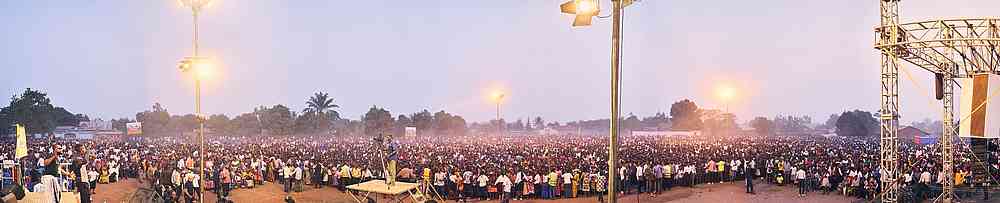 Bei der Evangelisation in Mwene-Ditu wuchs die Besucherzahl auf über 50.000 an. Als Evangelist Rubens Cunha die Menschen dazu einlud, wiedergeboren zu werden, war die Reaktion überwältigend.