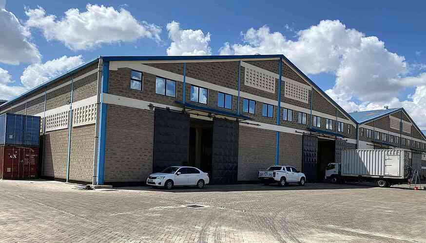 Das zentrale Drehkreuz unserer Aktivitäten ist praktischerweise unsere Lagerhalle im kenianischen Nairobi, das als Tor nach Ostafrika gilt. Unsere Halle gehört zu einem großen, gut gesicherten Gelände mit dicken Mauern. Sie ist von anderen Lagergebäuden umgeben, in denen Lebensmittel für das Welternährungsprogramm der UN bevorratet werden.