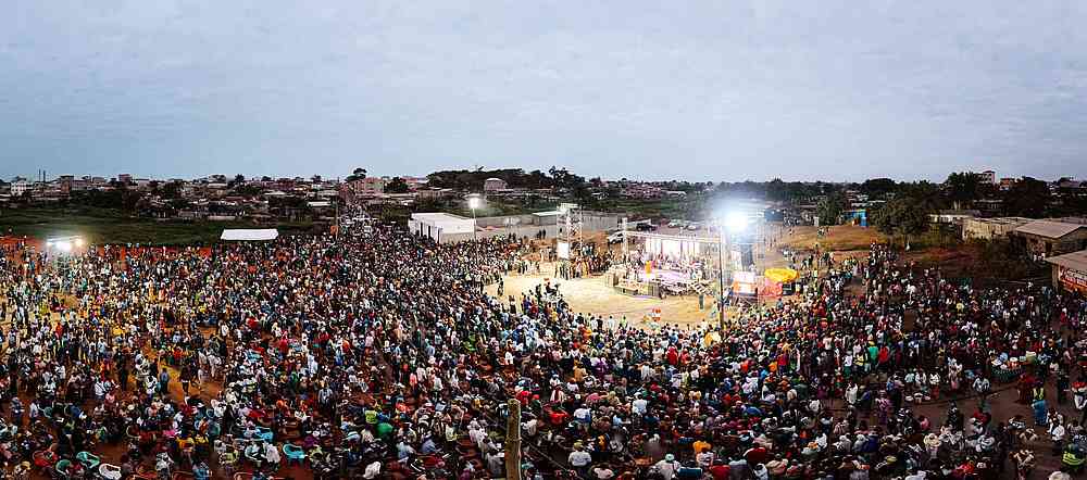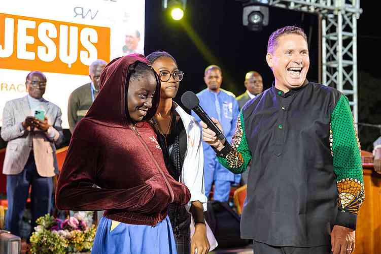 Wir hatten einen positiven ersten Abend. Die Menge war engagiert, viele sprachen das Bekehrungsgebet, und es gab so viele Wunder, dass wir sie nicht alle abfragen konnten!“