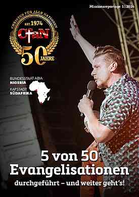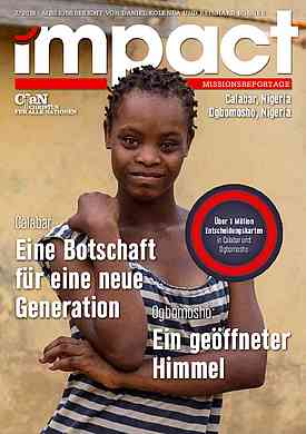 Hier kannst du jederzeit die aktuelle Ausgabe unserer Missionsreportage „Impact“ mit vielen Berichten und Fotos unserer Veranstaltungen in Afrika und weltweit finden. Wenn du den CfaN-Impact kostenfrei per Post erhalten möchtest, einfach hier bestellen: