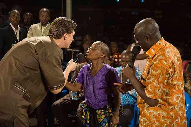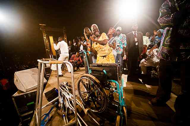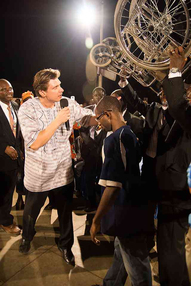 Bevor ich überhaupt zum Predigen aufstand (noch während der langweiligen Abkündigungen), begann überall auf dem Feld etwas, das schwer zu beschreiben ist. Meine Nackenhaare stellten sich auf, als ich sah, dass Rollstühle, Krücken und Gehhilfen in die Luft gehoben wurden – ÜBERALL! Eine nach der anderen, nach der anderen, nach der anderen, bis die Menge von 250.000 Besuchern zum Siedepunkt kam. Es wühlt mich jetzt noch auf, wenn ich darüber schreibe. Das Tosen der Menge wurde lauter und lauter, bis wir uns auf der Bühne voll Schrecken und Ehrfurcht anblickten! Es war kaum zu glauben, was dort geschah!