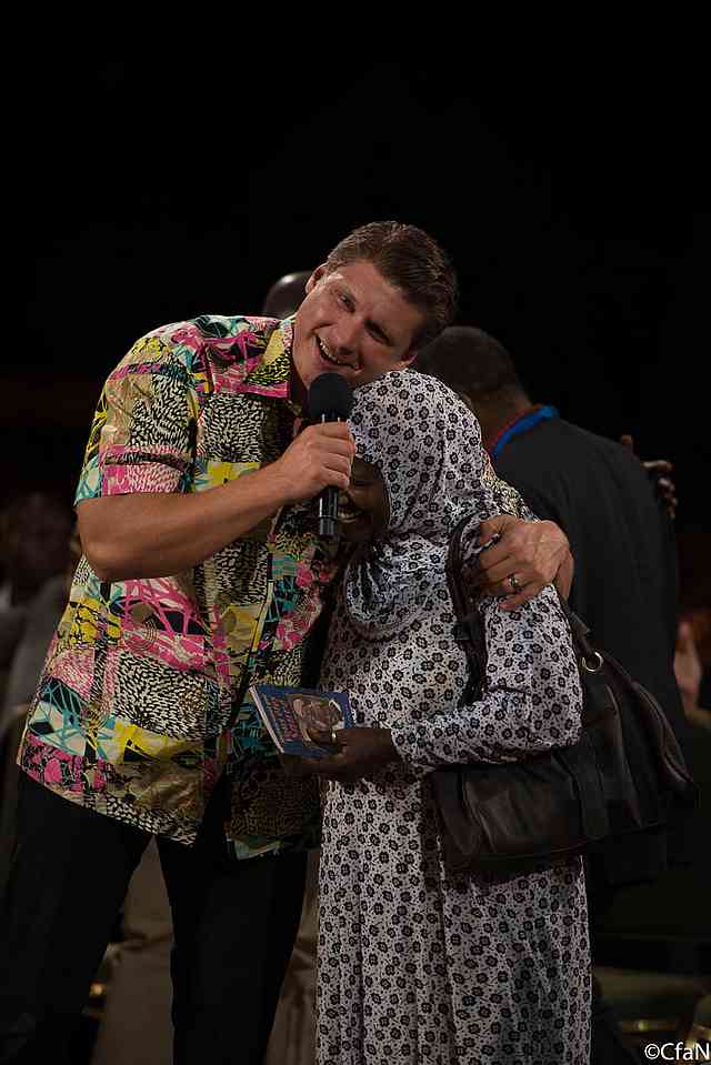 Sie bekannte, dass Jesus sie geheilt hat und sie war sehr glücklich. Bevor sie von der Bühne ging, sah ich, dass sie ein kleines Buch in der Hand hielt. Dies war das „Now that you are saved“-Büchlein, das wir allen neugläubigen Christen schenken. Ich fragte sie, ob sie sich auch an diesem Abend bekehrt hatte und sie sagte ja. Dies ist in der Tat das größte Wunder, das hier in Bobo-Dioulasso in ganz vielen Menschen passiert.