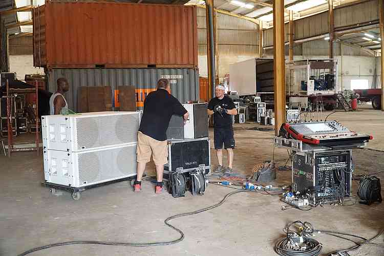 - das technische Team: Aufbau der Bühne, Soundsystem, Generatoren, Soundtürme, Lichtmasten usw.