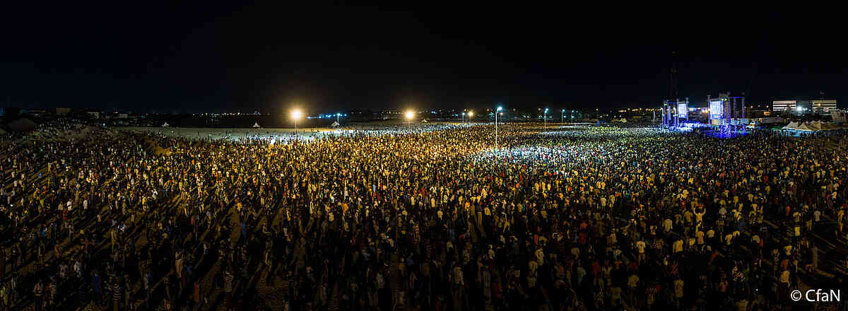 Evangelist Daniel Kolenda hat sich einen Moment Zeit genommen, um uns an der Atmosphäre und den wunderbaren Ereignissen der großen Evangelisation in Port Harcourt - direkt von der Bühne aus - teilhaben zu lassen. Er zeigt uns, wie Fetische von den Menschen vor Ort zusammengetragen und unter großem Lobgesang verbrannt werden und wie Hunderttausende Menschen in dieser Versammlung zusammenkommen.