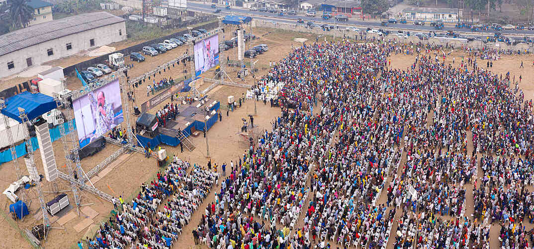 Gestern war der letzte Abend unserer Gospel-Kampagne in Warri, Nigeria. Die Freude über das, was Gott in der gesamten Woche getan hat, war bereits von Anfang an, als die ersten Zehntausend das Missionsfeld bedeckten, gegenwärtig.