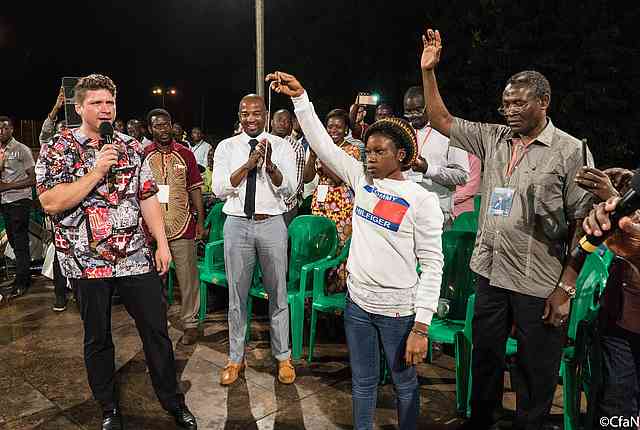 A woman had a tumorin her stomach that was painful and protruding. She had lost three pregnancies and believes it was due to the tumor. So she went to the witch-doctor for help. He gave her a charm to wear around her waist, but her condition had not changed. Tonight, during the prayer for the sick, the tumor vanished! She told me her story on the platform and said that she wanted to remove that charm she had received from the witch-doctor. Right there in front of the crowd, she removed it and gave glory to God!