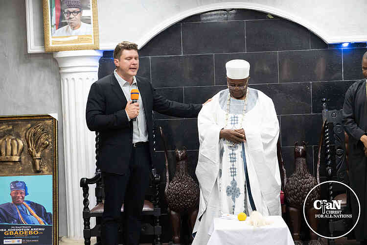 Then, when Daniel Kolenda arrived in Abeokuta, he was escorted to the governor’s mansion, where he was able to share with the governor (who is a believer) and his entire cabinet. After that, Daniel was taken to the king’s palace where he was able to share the Gospel. He told the king that he had come representing another king – not just any king – but the King of Kings and the Lord of Lords. Daniel was able to lead some of the chiefs to the Lord right there in the courtroom of the palace!
