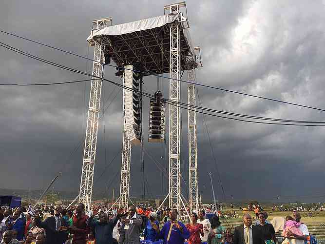 We have just returned from the final night of our Gospel Crusade here in Kisumu, Kenya. As we were driving toward the field tonight, we could see ominous black clouds and lightning threatening our open air meeting. The wind was blowing the storm toward the campaign, but we prayed and pushed forward with the meeting. The storm passed over us and everyone stayed dry. The meeting was glorious. Many thousands responded to the Gospel and wonderful miracles happened.
