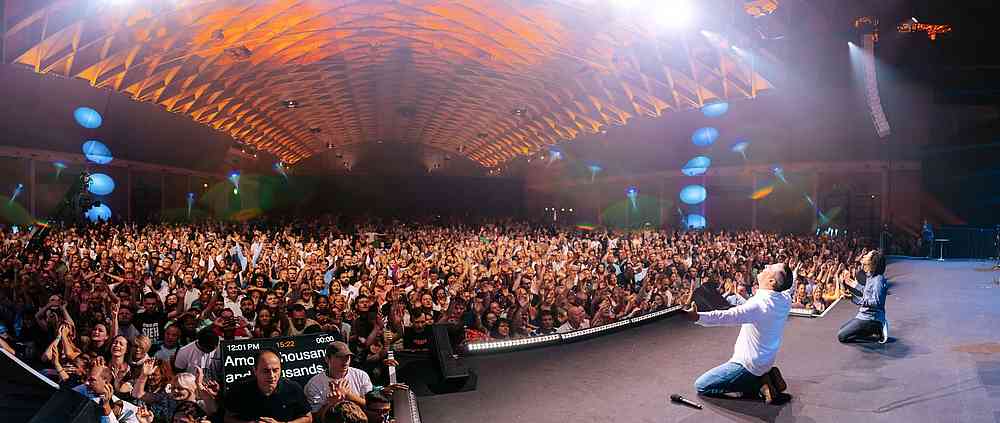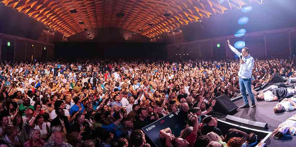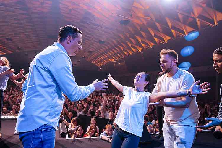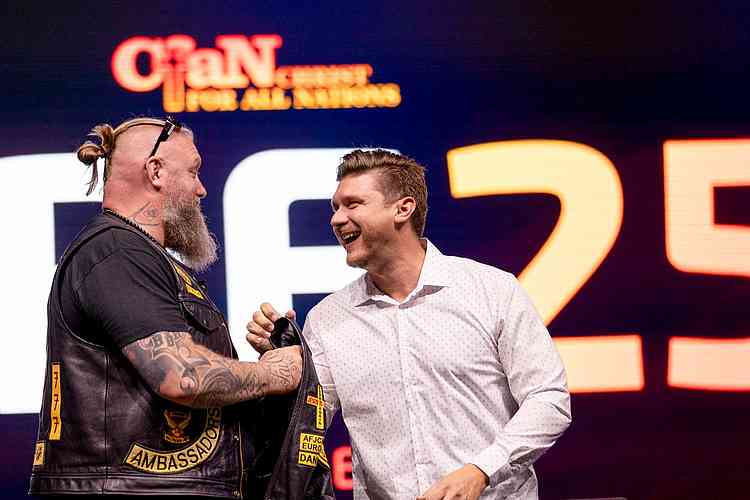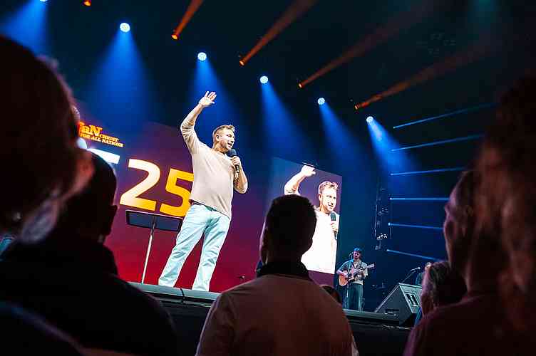 La dernière session de Fire25 était différente. Plus tôt dans la conférence, les délégués avaient reçu des billets gratuits pour la session du samedi soir et avaient été encouragés à inviter une personne qui ne connaissait pas Jésus. L’évangéliste Daniel Kolenda devait prêcher un message d’évangélisation et prier pour les malades. Lorsque le moment est venu de commencer, la salle était pleine à craquer.