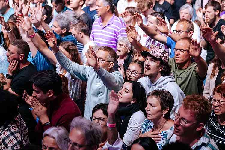 Lors de la deuxième session, Jean-Luc Trachsel a prêché avec passion, appelant à un abandon total à Jésus. Lorsqu’il avait fini avec son message, il semblait que la majeure partie de la foule se trouvait à l’avant, impatiente de recevoir de la part du Seigneur