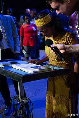 Samedi est la soirée ‘Saint-Esprit’ de la campagne d’évangélisation CfaN à Port Harcourt. Après avoir prêché un message sur le salut, l’évangéliste Daniel Kolenda a enseigné sur le baptême du Saint-Esprit. Et le feu est tombé ! Comme Daniel l’a dit : « Lorsque le Saint-Esprit tombe, les gens ne parlent pas seulement dans d’autres langues, mais tous les miracles sont possibles. Êtes-vous prêts à expérimenter la puissance de Dieu ce soir ? »