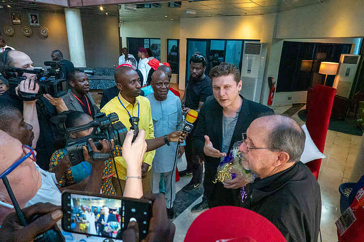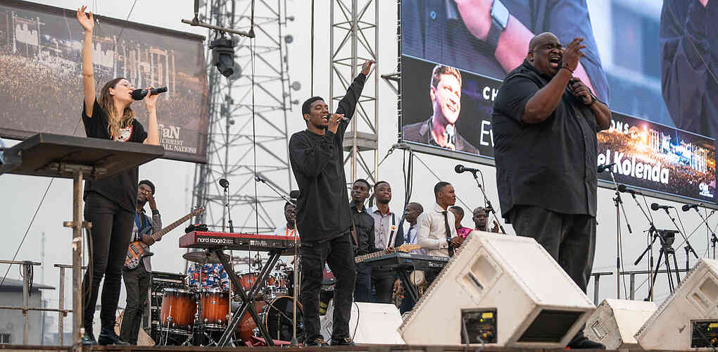 Cela a été les conditions de voyages les plus difficiles jamais expérimentées par aucun de nous. Même notre agent de voyage a dit qu’en 25 ans de travail, elle n’a jamais vu une telle situation. Ce matin, notre dernière connexion a été annulée encore une fois, donc nous nous sommes entassés dans des voitures et des bus, et avons fait un voyage de 8 heures par la route. Nous sommes finalement arrivés à Warri, au Nigéria pour la deuxième soirée de la campagne d’évangélisation juste quelques minutes avant qu’elle ne commence. C’est la toute première campagne de l’année et la première depuis le décès de l’évangéliste Reinhard Bonnke. Mais je suis sûr qu’il sourit depuis le ciel de voir que nous continuons à persévérer pour l’Évangile contre vents et marées.