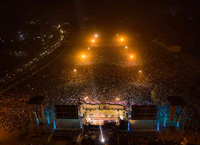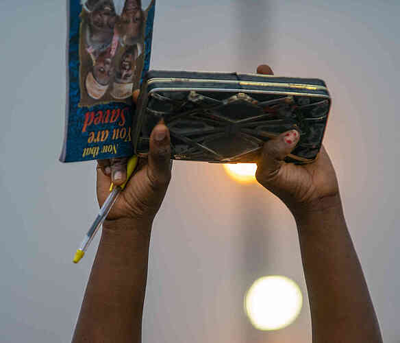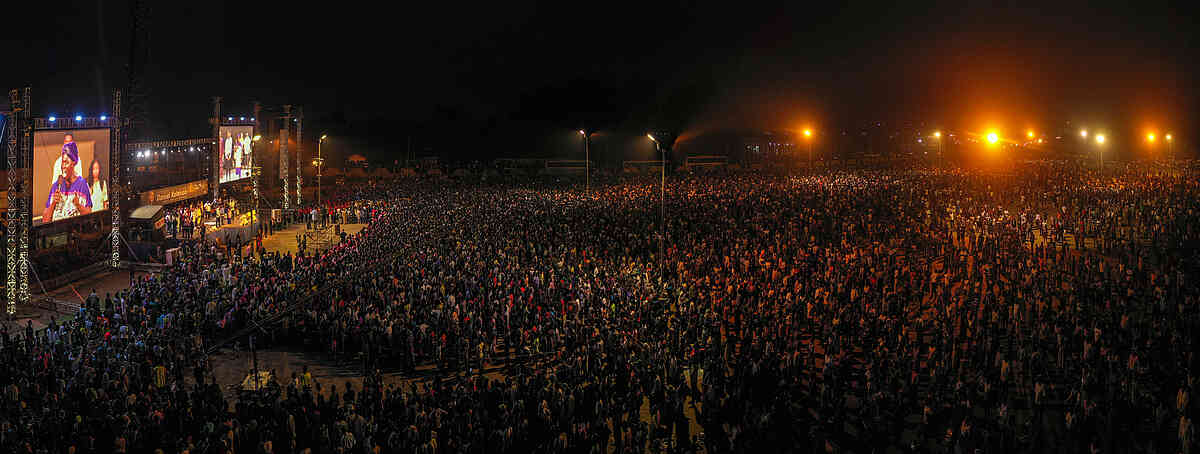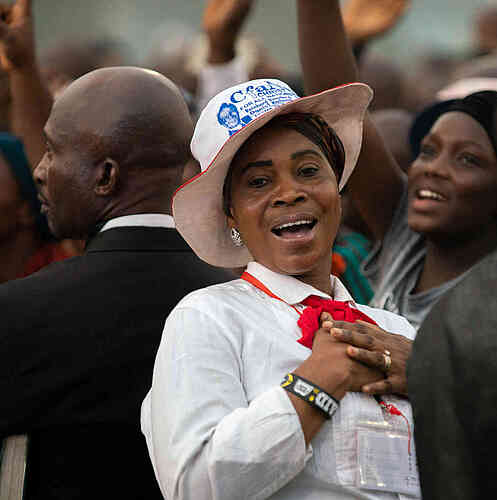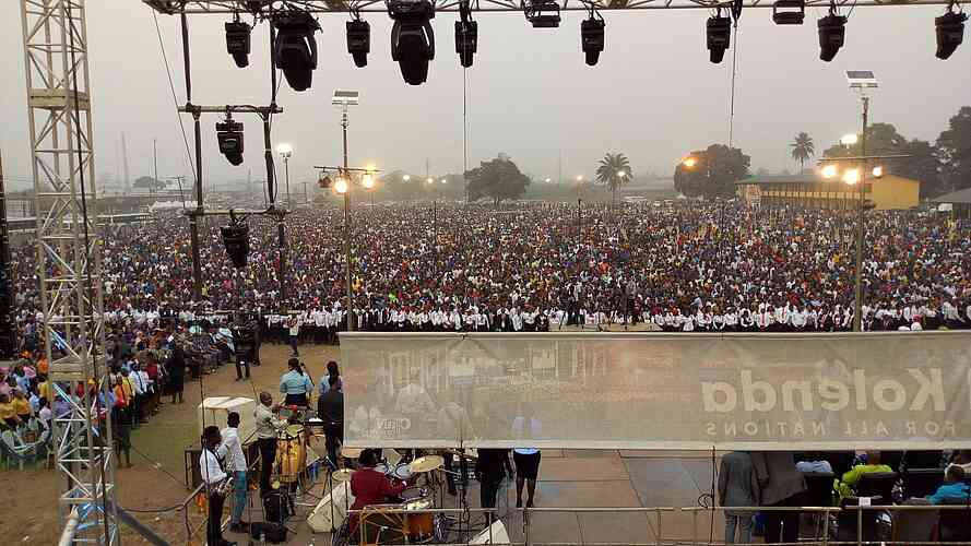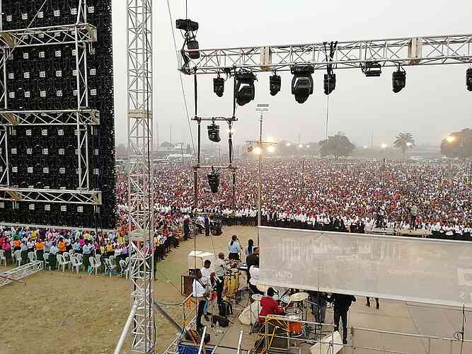 Parce que beaucoup d’entre nous avaient manqué la réunion d’hier soir, je me demandais si la foule reviendrait. Imaginez ma surprise à notre arrivée sur le terrain de la campagne, de voir plus de 120 000 personnes sur place ! Eddie James et son équipe sont montés sur la plateforme sans vérification de la balance du son, sans répétition, et ont époustouflé tout le monde. Évidemment, ils faisaient partie du convoi qui voyageait depuis des jours et qui est arrivé à Warri juste au moment où la campagne commençait. Je sais qu’ils étaient fatigués mais ils ont mené la louange avec passion. Ils étaient remplis de puissance et d’onction, et nous ont amenés dans la présence de Dieu.