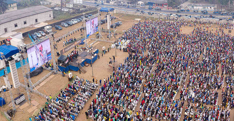 Hier soir, c’était la dernière soirée de la campagne à Warri, au Nigéria, et la joie de ce que Dieu a accompli toute la semaine était évidente dès que les premières dizaines de milliers de personnes se mirent à converger sur le terrain.