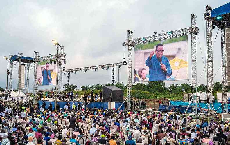 Lorsque nous sommes arrivés sur le terrain ce soir, nous avons été surpris. Le terrain est absolument gigantesque, tout comme la foule. Le terrain a presque les mêmes dimensions que notre campagne du millénium à Lagos, qui avait battu tous les records ! Dans mon esprit, je le vois déjà rempli à ras bord et Jésus glorifié dans cette ville comme jamais auparavant.